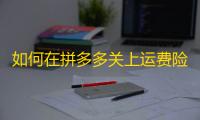 1.如何关上拼多多的运费险。商家需要登录拼多多的商家中心,商家中心是管理店铺的“大脑”。商户中心提供各种店铺管理和交易管理功能。商户需要找到与运输保险相关的管理选项,这些选项通常隐藏在店铺管理或交易管2025-11-08